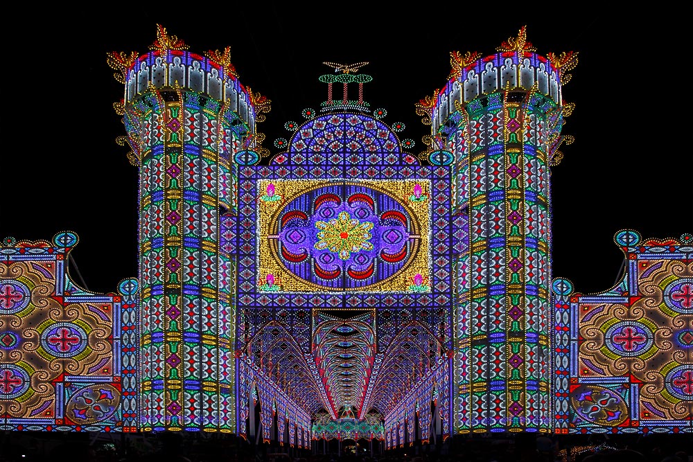 Sono delle strutture pazzesche, imponenti ma quello che è ancora più bello e che l'illuminazione non è statica come le luminarie tradizionali ma si accende e si spegne a ritmo di musica.