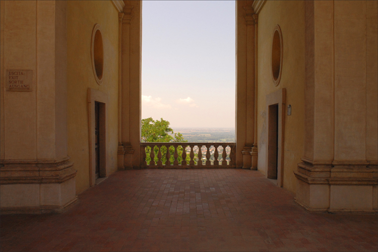 Tu dici serve solo da cornice,ma al bel quadro che si prospetta oltre la raffinata balaustra serve una cornice degna e questo non va a togliere forza al paesaggio che è dove l'occhio è guidato dalla sapiente composizione.