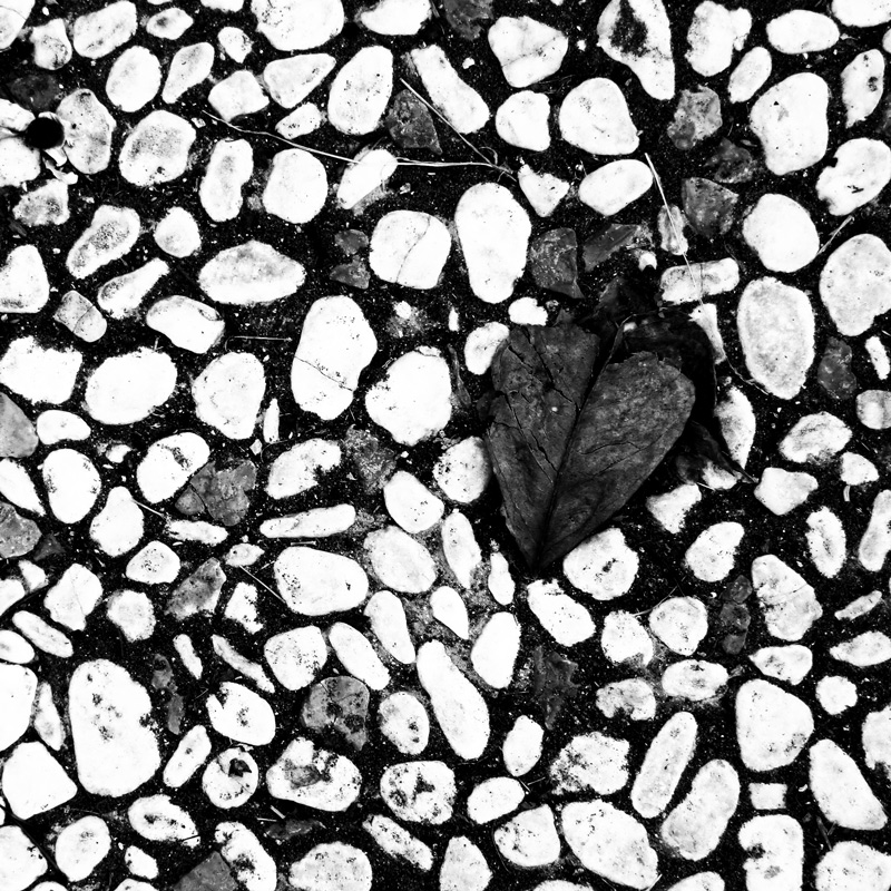 Manca un po di definizione, i sassi bianchi hanno perso il senso della materia, la foglia ha grigi simili ai sassi.