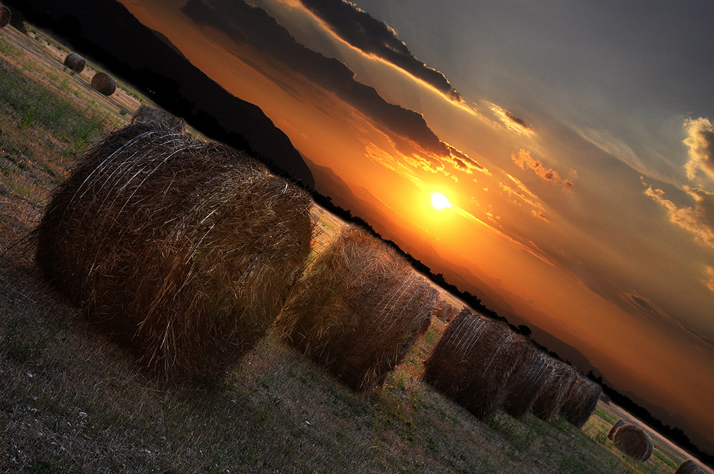 Ciao Max, grazie per il benvenuto e per il tuo costruttivo commento, la scelta di questa inclinazione era volta a far coincidere la linea dell' orizzonte con la diagonale della foto ed a creare una linea più o meno orizzontale unendo le parti inferiori delle balle di fieno; ...due scatti, la differenza di luce tra cielo e terra era davvero tanta! Per l' esposizione provo subito a sovraesporre un pò il primo piano (ho conservato i raw Wink )