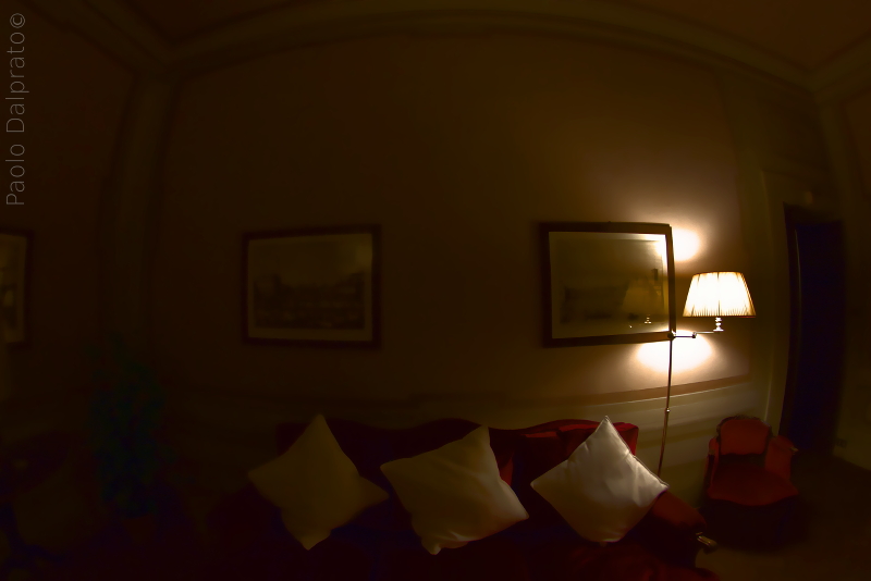 Qui avrei tagliato la sezione del fotogramma comprendente un quadro la poltrona e la lampada..ah pure la porta così sarebbe luce in penombra;))