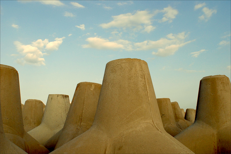 Un'ottima foto che trasforma in arte dei semplici frangiflutti. Bravo!  |
