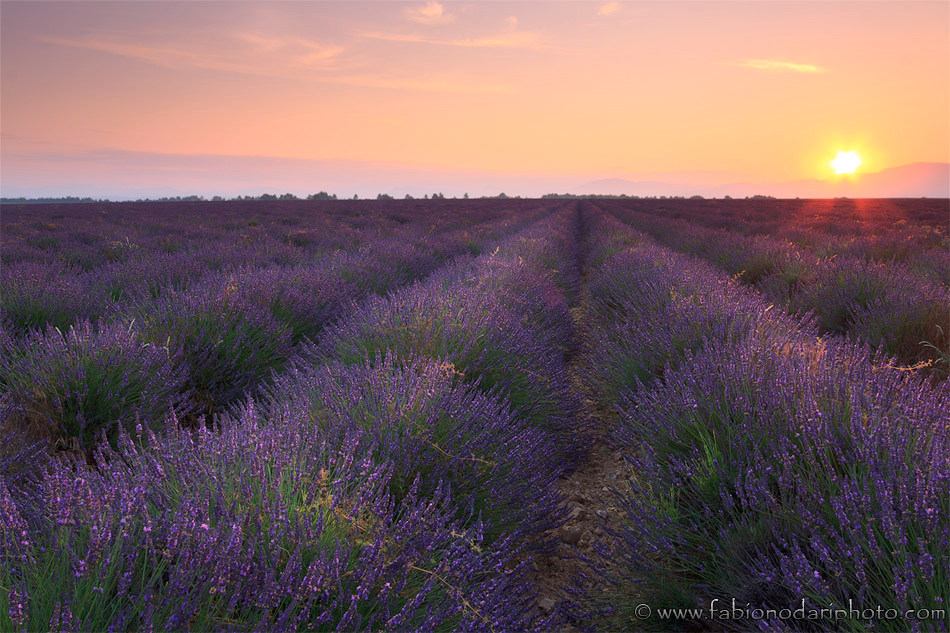 Per ridurre la bruciatura del sole avresti dovuto attendere ancora un paio di minuti, fino a che il sole impattava con la collina. In auto modo avresti anche enfatizzato l'effetto stella. Per il resto e' un bel classico provenzale.