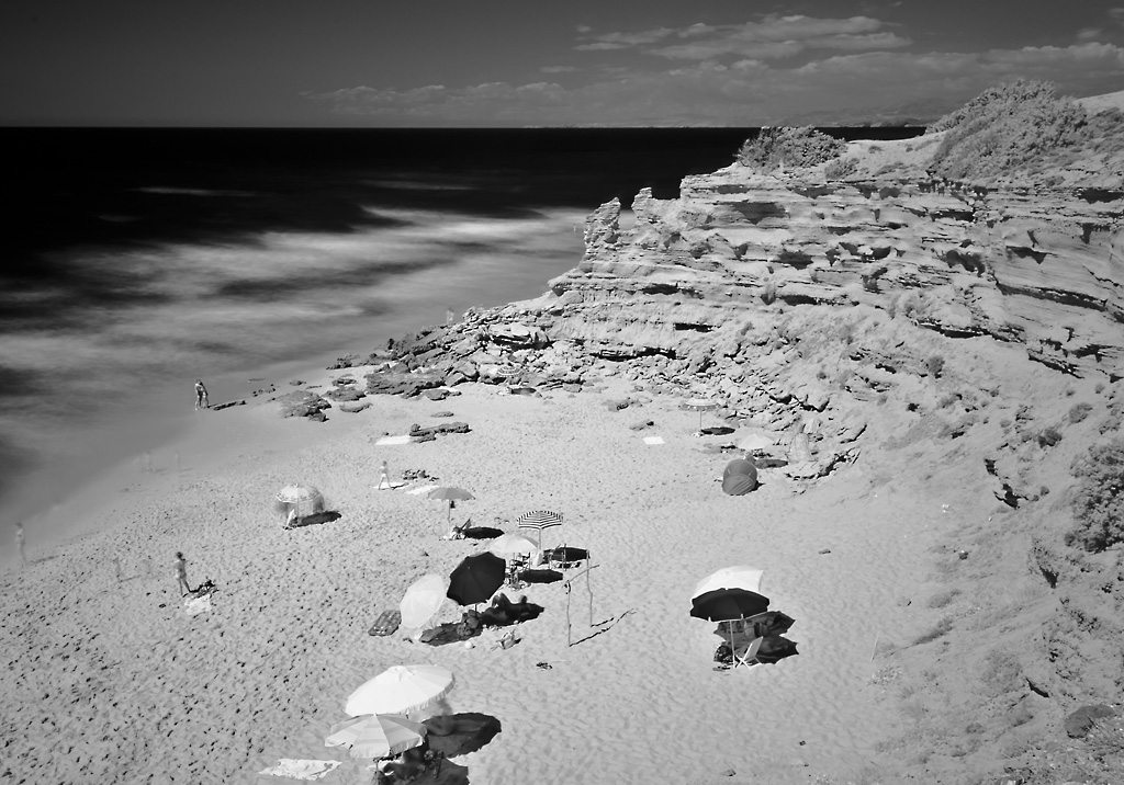 Ciò nonostante la foto ha una sua particolarità che la rende interessante proprio in quel contrasto tra il mare, gli ombrelloni e la parete rocciosa, ma forse il momento non era dei più indicati se volevi sfruttare le potenzialità della lunga esposizione.....