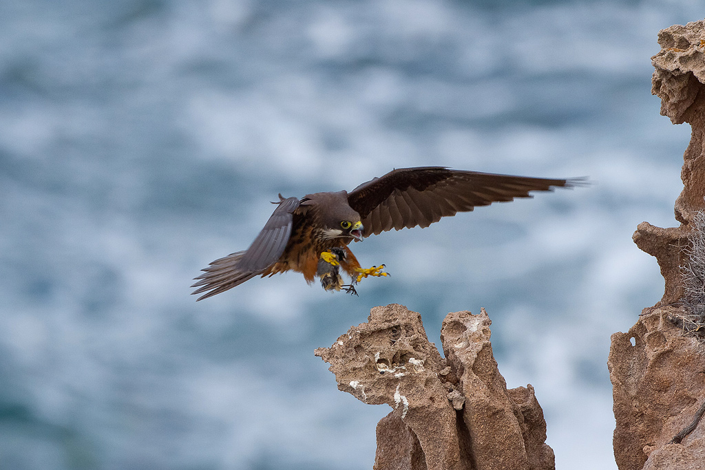 Il Falco della regina è un abitante delle falesie mediterranee , la sua peculiarità , oltre che la bellezza , sta nel fatto che nidifica in una stagione completamente diversa da quelle normalmente utilizzate dagli altri uccelli, infatti i pulli sono nati da pochi giorni e il loro allevamento finirà verso la fine di Ottobre, questa specie ha adattato l'orologio biologico alle favorevoli disponibilità di cibo che sopraggiunge sulle coste al passaggio dei migratori, che sono la loro fonte di cibo .