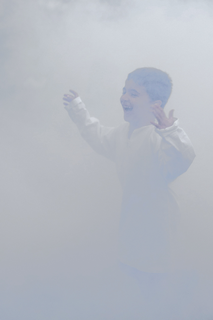 Bello l'apparire di questa espressione di pura gioia infantile dal nulla tutto attorno. Un'indefinitezza che anziché nascondere sottolinea.