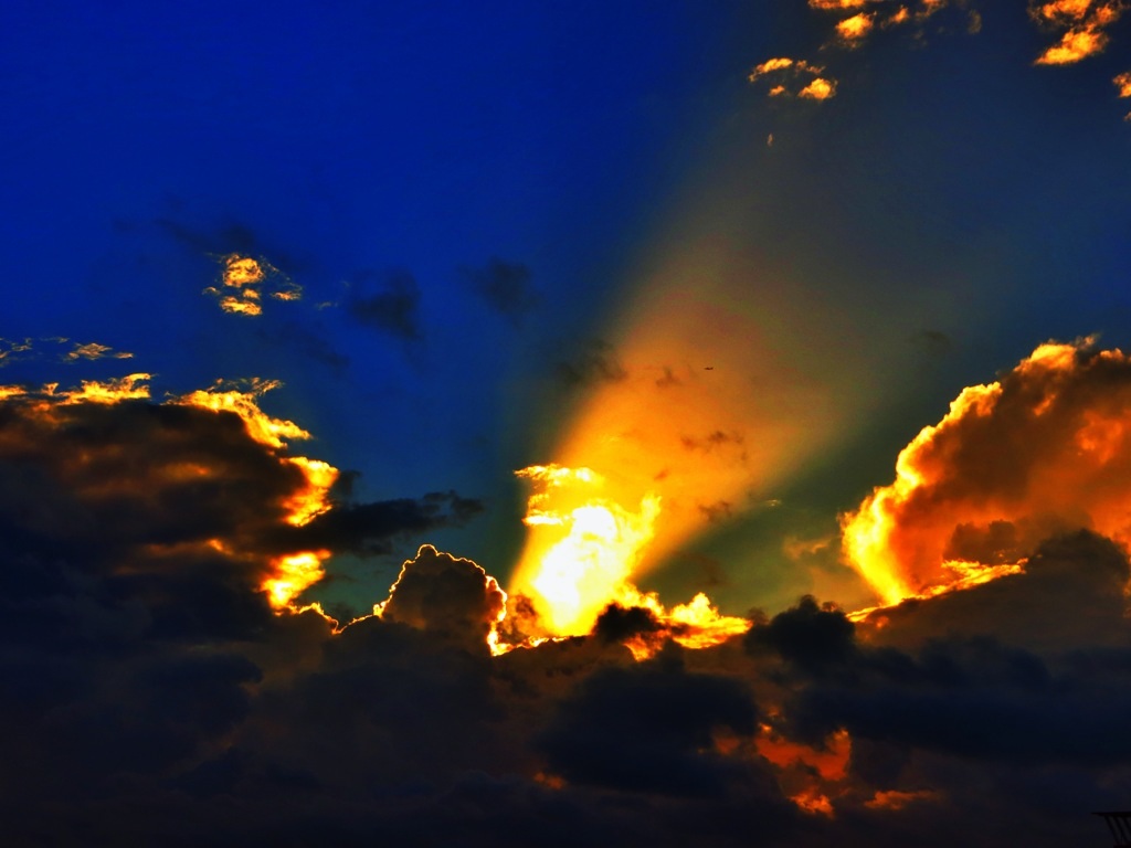 La foto...sinceramente....mi trasmette più una forza del cielo....che un messaggio a metà tra positivo e negativo. Il fascio di luce che emerge dalle nubi colpisce per la sua forza......proverei tornando all'inizio della riflessione a vedere altri scatti modificati con colori e saturazione diversi....
