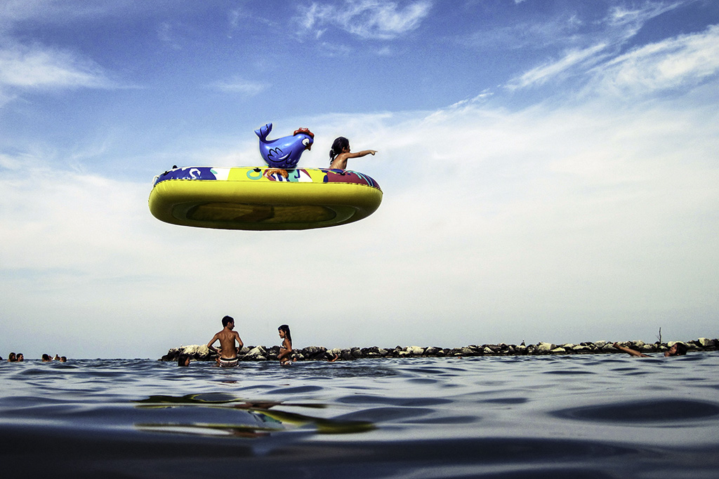 Il solo appunto che mi sento di farti è che per rendere più realistico il tuo progetto avresti dovuto coinvolgere qualche bagnante che avrebbe dovuto indicare il canotto con stupore, in modo tale da rendere verosime il "volo" del canotto. Ok!