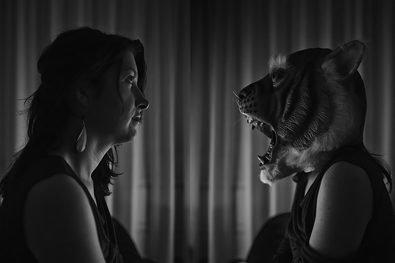 Coerente col titolo del contest e di facile interpretazione questa doppia personalità rivelata da una maschera indossata per riflettere il cambiamento di carattere di una persona.