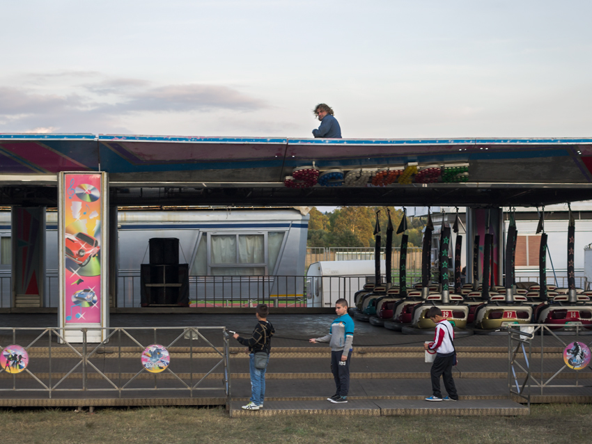 I ragazzini sotto non sono in coda, anche se sono in fila, stanno aprendo la catena (il ragazzo con la giacca bianca e rossa ha in mano il cartello di divieto), sono impazienti, non resistono, le giostre ancora non hanno aperto.