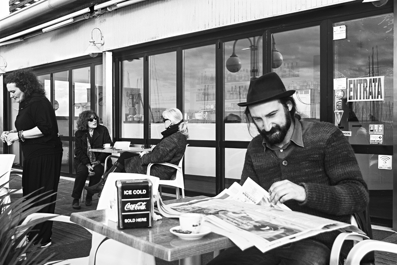 Su una eventuale "serie" ispirata al tema bar nelle sue varie declinazioni questa funziona molto meglio dell'altra. Certo il fuoco pare un po troppo indietro e la donna sulla sinistra disturba soprattutto per il gesto e per la troppa vicinanza al bordo, però limitando l'inquadratura al protagonista e alle due comparse le cose migliorano.