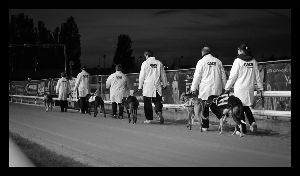 L'atmosfera "post-atomica" accentuata dal trattamento in post produzione non sembra necessariamente legarsi al contenuto, ma é proprio questa contraddizione che dona un tocco quasi surreale all'ordinata processione di cani e persone.