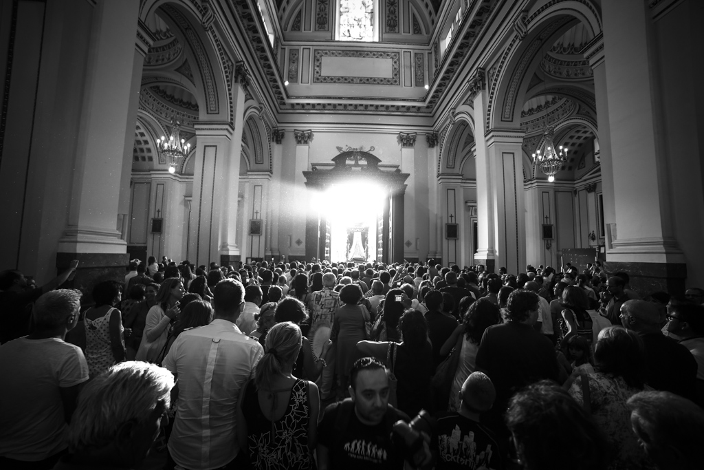 Bello il controluce della folla rivolta verso la statua della Madonna!Avrei forse dato un taglio panoramico eliminando la zona alta fino a poco sopra i capitelli che sovrastano l'ingresso.Ma capisco anche che l'immagine fa parte di una serie di scatti,tutti splendidi,realizzati suppongo a fotogramma intero senza tagli.Complimenti!!  _________________ Sergio Demitri https://www.flickr.com/photos/124946035@N02/ |