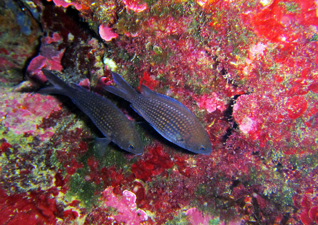 Scherzi a parte, ho scelto questo scatto perché mi è sembrato singolare la posizione delle due castagnole, che stanno ultimando il mutamento della livrea, come hai giustamente osservato da buon sub, e poi lo sfondo, secondo me, è bello con quel rosso...Grazie del positivo commento. Ciao un saluto da Arturo  |