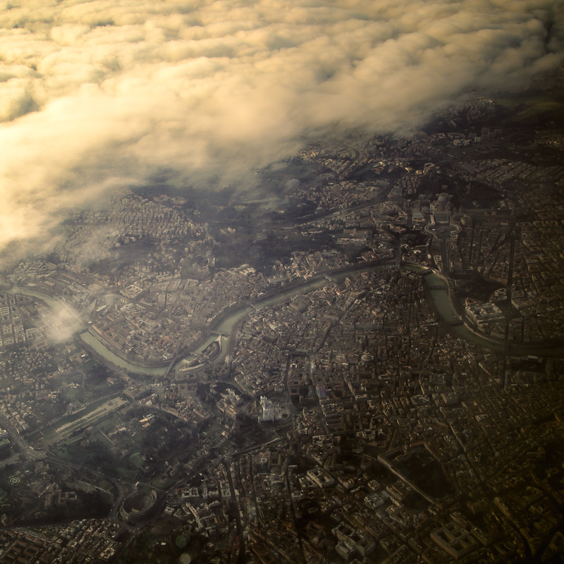 La curva del Tevere, che svela il suo viaggio, a poco a poco, oltre le nuvole, è davvero affascinante. Uno sguardo da un punto di vista.. specialissimo.