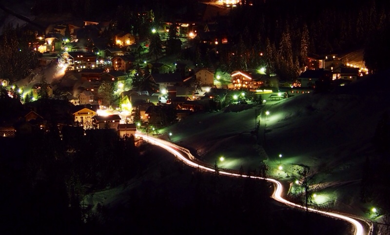 Anche per me notturno riuscito; Forse, se fosse stato possibile, avresti dovuto allontanarti un po' di più, per includere anche la zona luminosa in alto. Inoltre mi dà l'idea che occorra una leggera rotazione a destra.