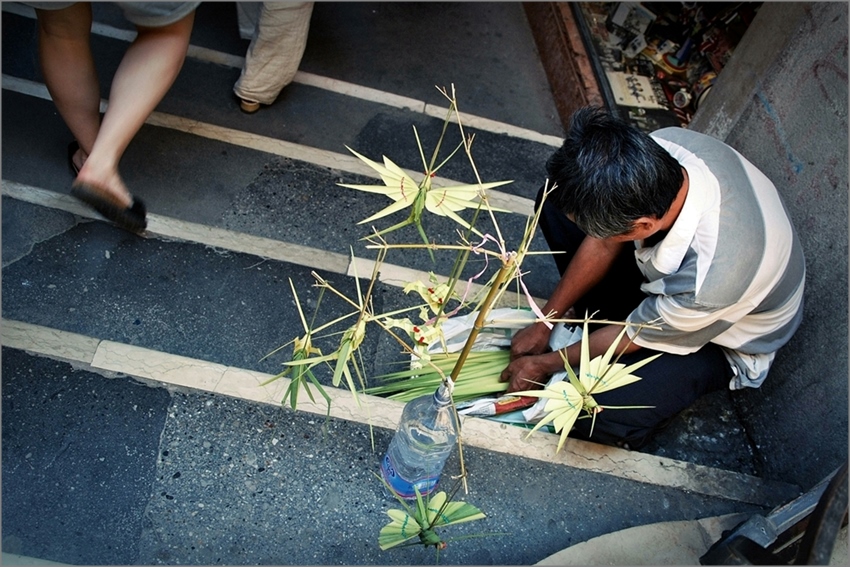 | Non sono mai stato contrario agli scatti ripresi dall'alto ma in questo caso credo che il punto di ripresa condizioni negativamente il tutto schiacciando il soggetto sull'asfalto. Mi piacciono invece i piedi che danno dinamismo e senso alla foto. |