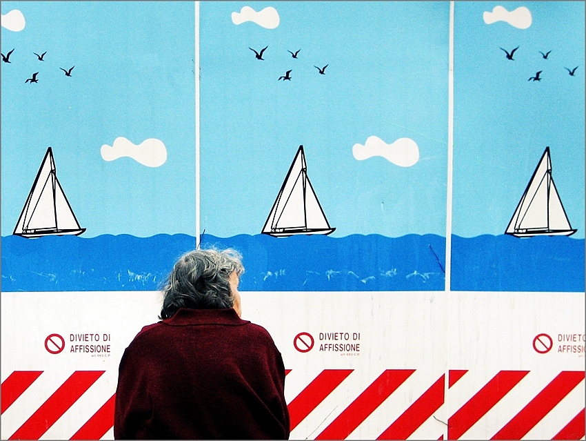 Grazie Anthias per il graditissimo commento! Mi aveva infatti colpito il contrasto tra il senso di libertà espresso dalle vele ed i gabbiani ed il divieto,con la presenza di questa anziana signora forse persa in lontani sogni.Ciao!  _________________ Sergio Demitri https://www.flickr.com/photos/124946035@N02/ |