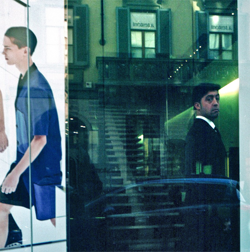 mi ha colpito per le vetrine, la rigidità da manifesto dei commessi: per poi capire da uno sguardo che possono essere reali.