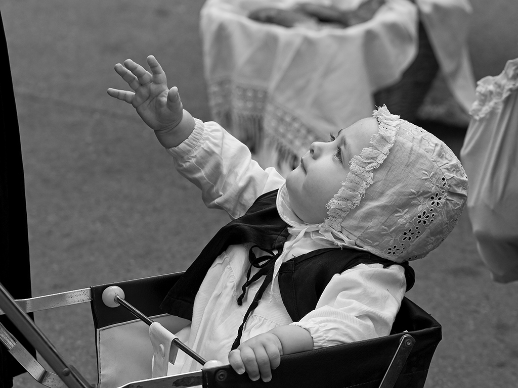 trovo il gesto del bimbo molto bello, ma personalmente avrei incluso anche la persona a cui era rivolto, il solo lembo di stoffa scura lo percepisco come un errore..
