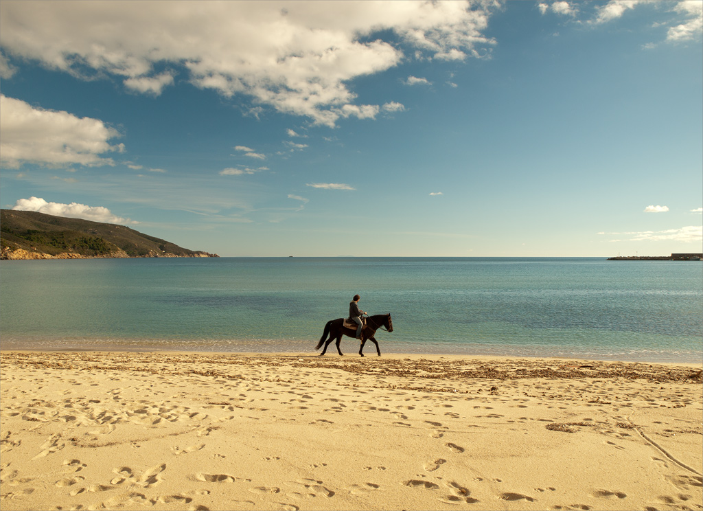 La scena è bella, nitida e serena nel mood che personalmente mi restituisce. Mare calmo, spiaggia deserta ma non disabitata ( vedi le molteplici orme di passaggio) e cavaliere perfettamente in sintonia con l'ambiente, senza rubare la scena.. al paesaggio stesso. Sulla tinta ultra dorata, direi che la dominante in questo caso non mi convince al 100%.. ma si tratta di gusti ovviamente.