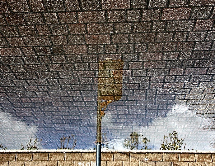 piu' muretto e linee piu' rette...impossibile! Per avere quello che volevo, era l'unica inquadratura possibile...perche' era l'unico punto dove l'acqua mi rifletteva bene il secchietto della mondezza...come mi spostavo non ce ne era piu'....e prendevo anche l'asciutto...