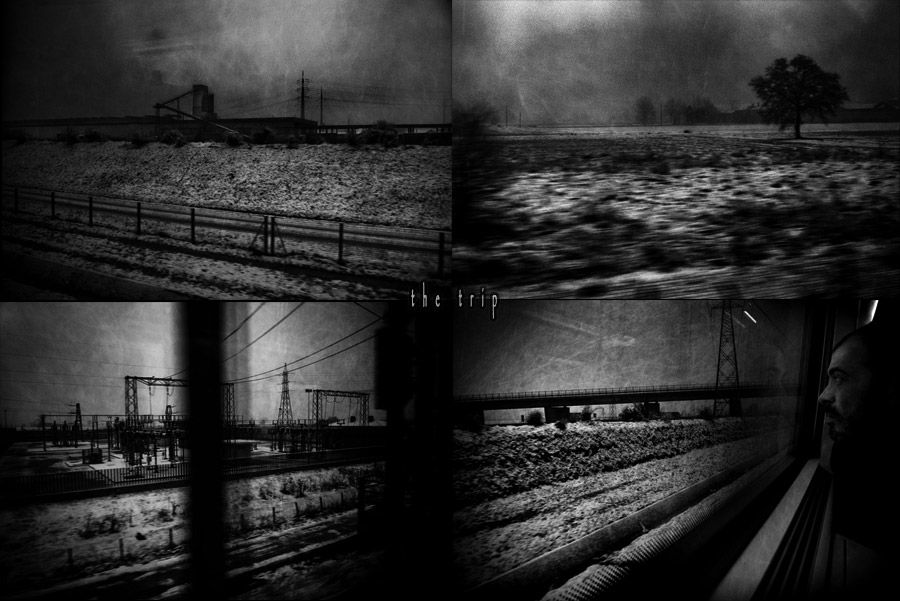 Mi piace molto questa sequenza di visioni dal finestrino con "l'osservatore" che compare a margine dell'ultimo fotogramma.Il bn,almeno per me,è fantastico!Complimenti!Preferita!