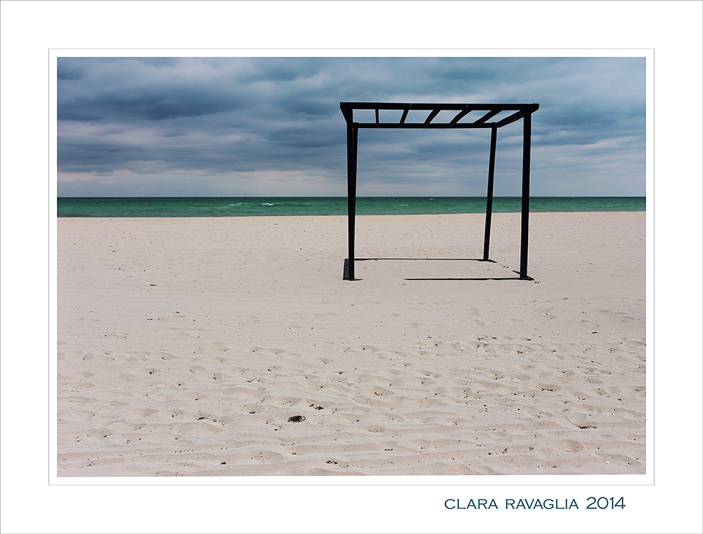 Il fascino delle strutture isolate sulla spiaggia non ha confini...nel rigore compositivo, questa sorta di scheletro estivo, spicca per la sua apparente instabilità e movimenta la foto, altrimenti dominata dalla staticità delle linee. Luce cruda come cruda appare nella sua essenzialità.