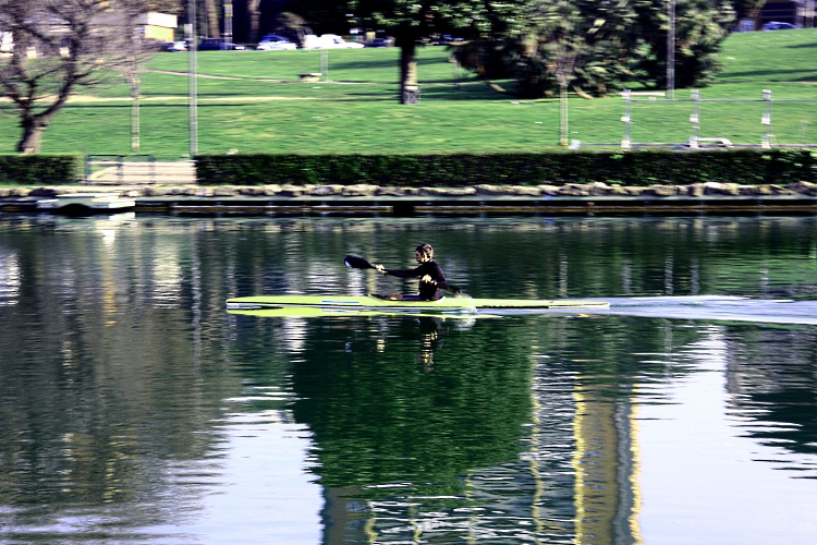 buona l'idea di applicare la tecnica a questo sport ma attenzione che con uno sfondo così ampio e pieno di dettagli si rischia di essere catturati più dal mosso del paesaggio che dal fermo dinamico dell'imbarcazione...