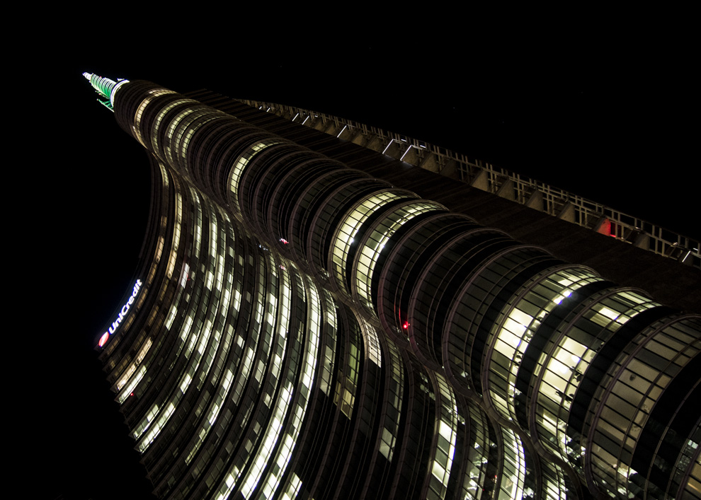 Mi piace molto il taglio che hai dato, che esalta la sinuosità delle linee e il puntamento della torre verso il cielo… e mi piacciono molto anche i toni violacei, scuri ma allo stesso tempo luminosi…