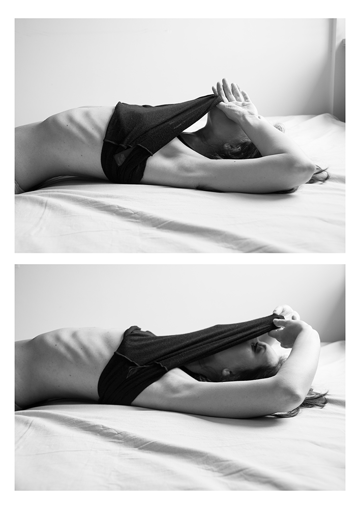 Mi piace molto il modo in cui la luce disegna il corpo, soprattutto nella prima per un piccolo dettaglio che però, secondo me, fa la differenza: una sottile linea d'ombra (la cassa toracica) che stacca il corpo dal muro; nella seconda questa linea manca e i toni di grigio tendono a confondersi.