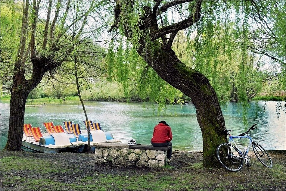 tutto sembra essersi messo per un momento in pausa,il ragazzo,la bici,i pedalò...come composizione e come contenuto la trovo davvero ottima