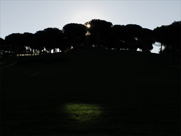 A mio personalissimo gusto avrei provato una seconda versione super minimal...Avrei tagliato del tutto il paesaggio in alto e creato una tela fotografica tutta nera con la pennellata di luce e verde al centro...