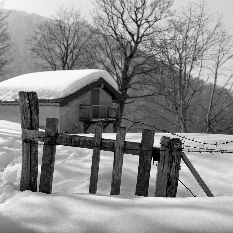 Staccionata e neve hanno dei toni e un contrasto moooolto bello.
