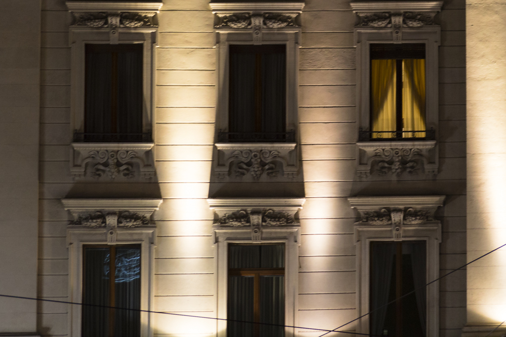 Tentativo sicuramente apprezzabile, buona la gestione delle luci. Riguardo la composizione sembra tu voglia escludere la parte inferiore (balconi), forse per un elemento di disturbo. Il fuori bolla si può rimediare in post, così come i fili che disegnano delle diagonali in grado di distogliere leggermente l'attenzione, ma il micromosso è veramente una "croce".  _________________ Canon 5D3 [Tamron 24-70mm f/2.8 VC] [EF 50 f/1.8 STM] [EF 135 f/2L USM] [EF 70-200 f/4L IS USM] BG-E11 430exII