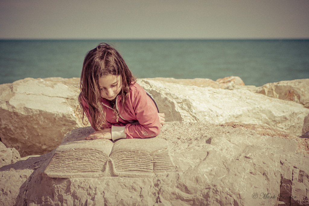 mi piace il look vintage ed anche quel libro scolpito nella pietra forse a dire che la bambina legge molto quindi un ritratto abbastanza eloquente.
