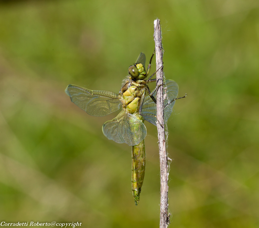 Ciao Roberto, osservando la tua fotografia si sente il bisogno di una versione hd...il dettaglio sembra venire meno...ed una versione grande svelerebbe se di riduzione si tratta o meno. Hai scattato con cavalletto? Potrebbe esserci micromosso? Ecco le domande che una versione più grande chiarirebbe... Il momento colto, presumo neosfarfallato, è sicuramente emozionante...il taglio scelto, come giustamente dice Pier, non è indicato..., un verticale avrebbe meglio accompagnato questo soggetto. Ricordo che appena usciti dal loro vecchio vestito la superficie del corpo era traslucida e di difficile riproduzione...specie sotto il sole..., potrebbe essere anche questo motivo di un dettaglio difficile... Bravo per esserci stato ed averlo ripreso, buona serata.