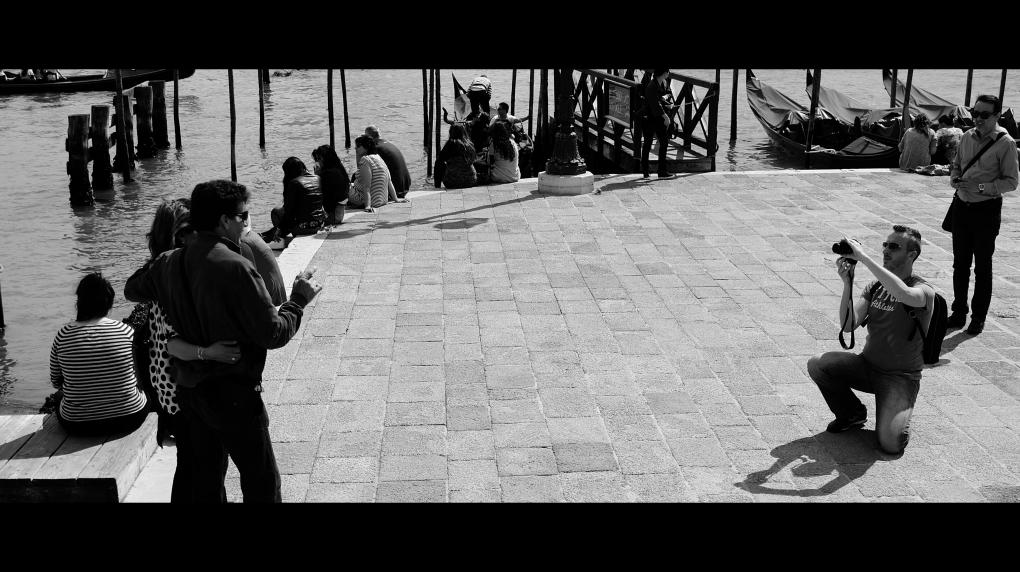 Personalmente quel che più noto e che più mi disturba é tutto quel selciato proprio in mezzo; cerco ai lati qualcosa che giustifichi quel vuoto e non lo trovo. Non credo che alzare l'inquadratura avrebbe giovato perché avere più gondole o più molo avrebbe aggiunto poco alla scena principale.