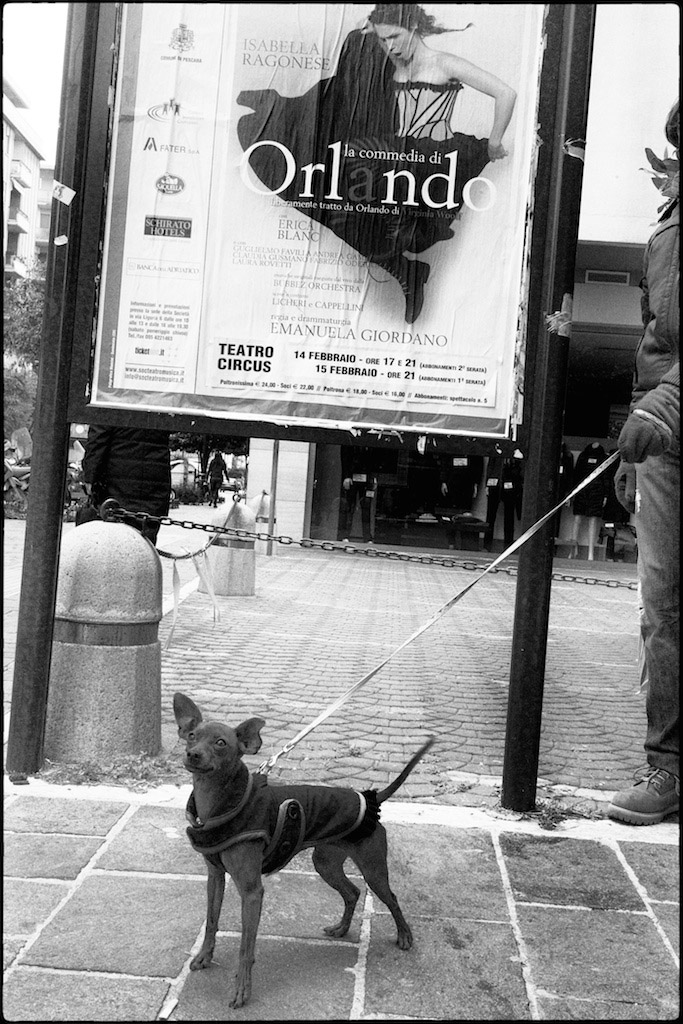 Se la trama narrativa che sorregge il contenuto dell'immagine (che poi sarebbe ciò che ti ha invogliato a scattare) è quella che pens io, un plauso per averla vista e mostratacela : un cane dallo sguardo di certo non dei più coccolosi, e una donna che sobbalza per lo spavento.