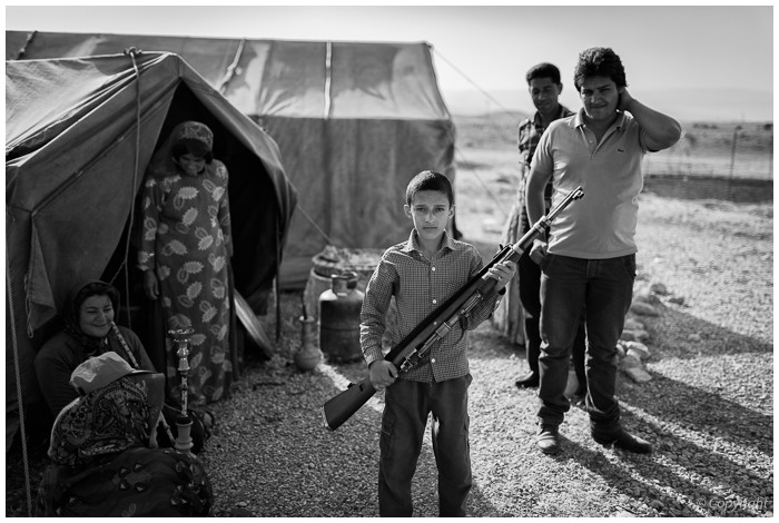 In sostanza era un allegra famigliola nomade. Non so se i qashqai siano dei gran militari, questi che ho incontrato io erano semplicemente dei pastori e quel fucile non era li per uccidere qualcuno ma - presumo - semplicemente per proteggere il gregge (o loro stessi) dai predatori. Se il fucile sia proprio suo, del padre, del fratello o di famiglia non lo so.