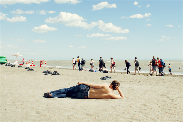 Bello il contrasto tra il relax del ragazzo disteso e l'andare del gruppo,ottima anche la tonalità di colore.  |