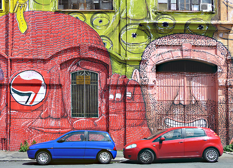 la foto è simpatica ma aspetterei che le macchine sparissero e mi darei a qualche particolare "ritagliato" in maniera impeccabile..però..