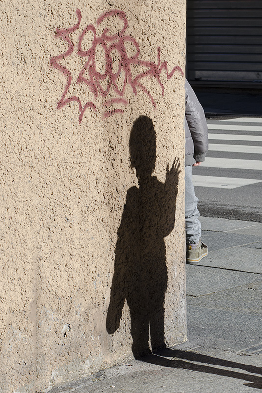 L'ombra si stacca dal suo padrone e lo saluta mentre lui ignaro aspetta di attraversare scena surreale come sempre complimenti  |