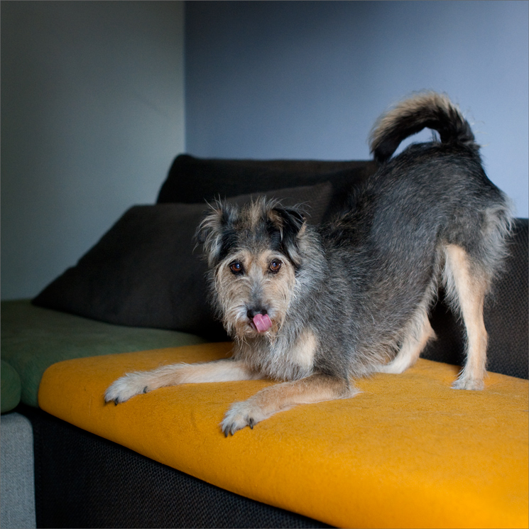Sempre stupenda, una vera queen canina. Il colore qui,nelle sue geometrie di sFondo sui tessuti, le lucida e vivacizza il pelo. Seramente.. ben colto il gesto, la linguettina e lo sguardo brillante.