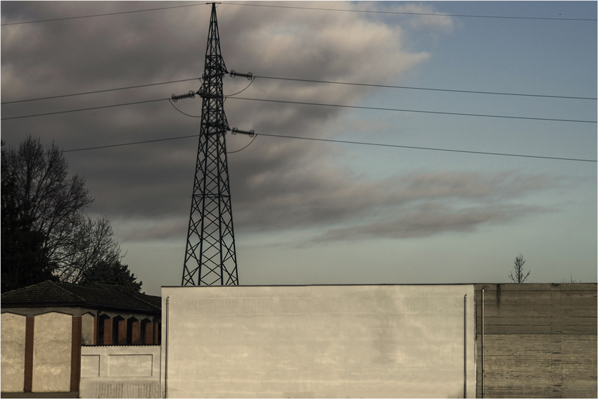 Una foto che mi piace. Concordo sulle belle condizioni di luce. Apprezzo molto il bilanciamento fra il grigio del muro in basso a sinistra e le nuvole in alto a destra. Bello il terminale del l'albero che spunta a malapena e che fa da contraltare al traliccio ben più imponente. A mio gusto, avrei preferito la punta del traliccio un po' più distante dai limiti dell' inquadratura.