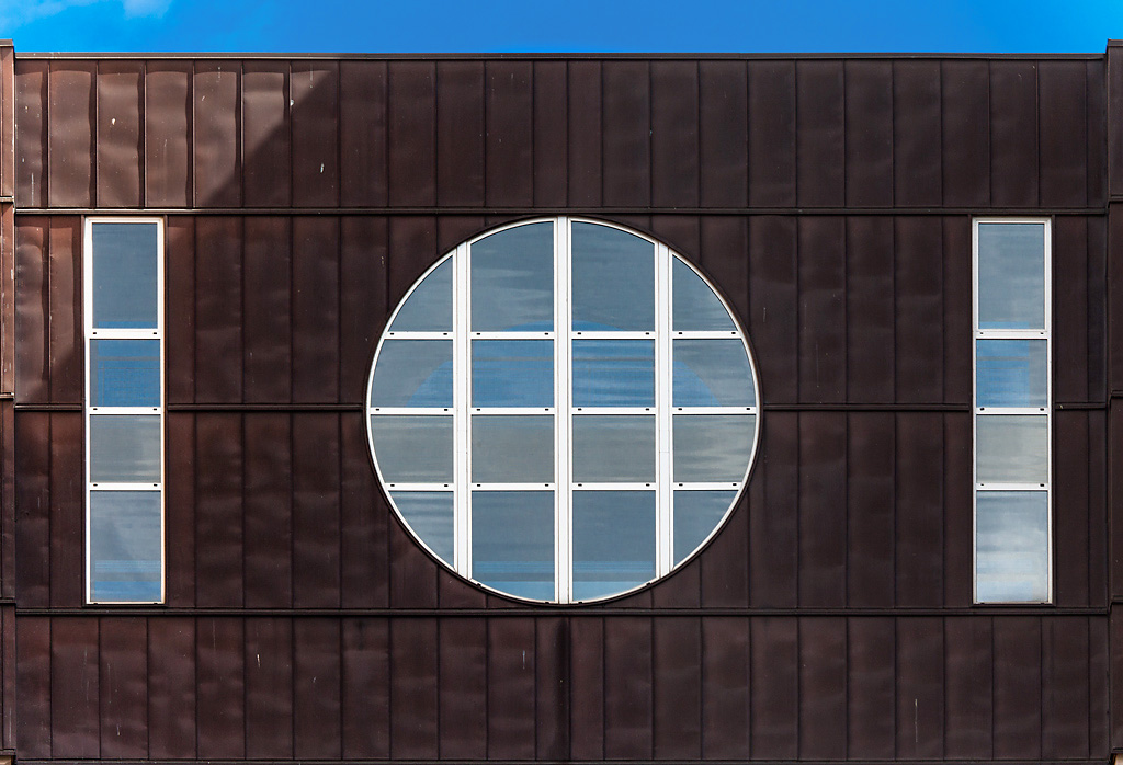 La struttura è bella e ripresa con cura maniacale ma la luce in primis ti è stata nemica. Buona la scelta di lasciare una porzione di cielo, senza diverrebbe troppo "pesante". Personalmente non riesco a decifrare le chiazze blu sulle vetrate da cui traspare il mare o almeno presumo che lo sia, non è perfettamente chiaro in verità. Ciao.