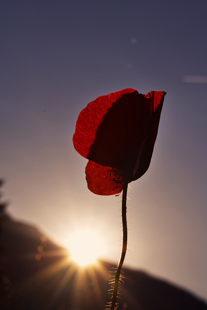 Una visione un pò diversa del papavero, a mio parere ben riuscita. Bella la venatura in controluce dei petali ed i colori; avrei forse clonato i due flares in cielo e la scia, per una maggior 'pulizia' dell' immagine.