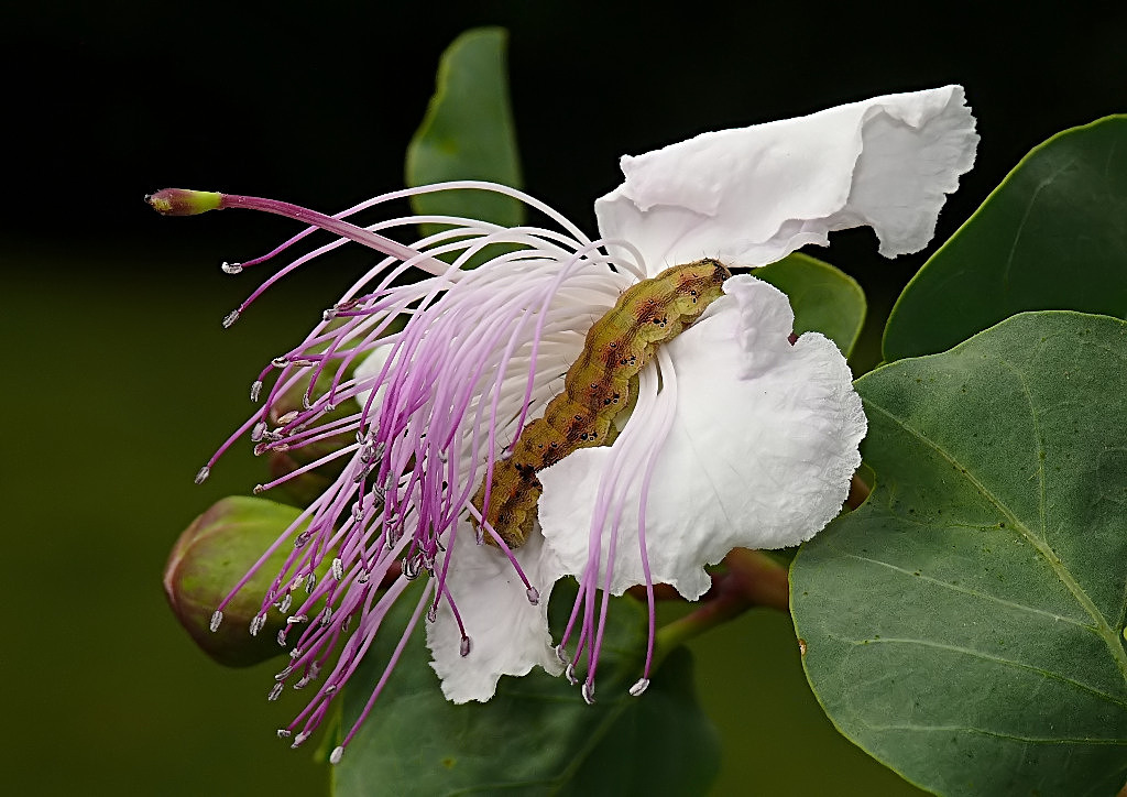 Adoro i capperi...e trovo sempre piacevole e divertente arrampicarmi sui muri per coglierne qualcuno, ma solo per mostrarli a mia figlia, per esempio...o a chi non ne conosce lo stato di frutto...prima di finire in salamoia... Hai ottenuto anche un ottimo dettaglio...ed una buona composizione, capperi che bruco! Ciao