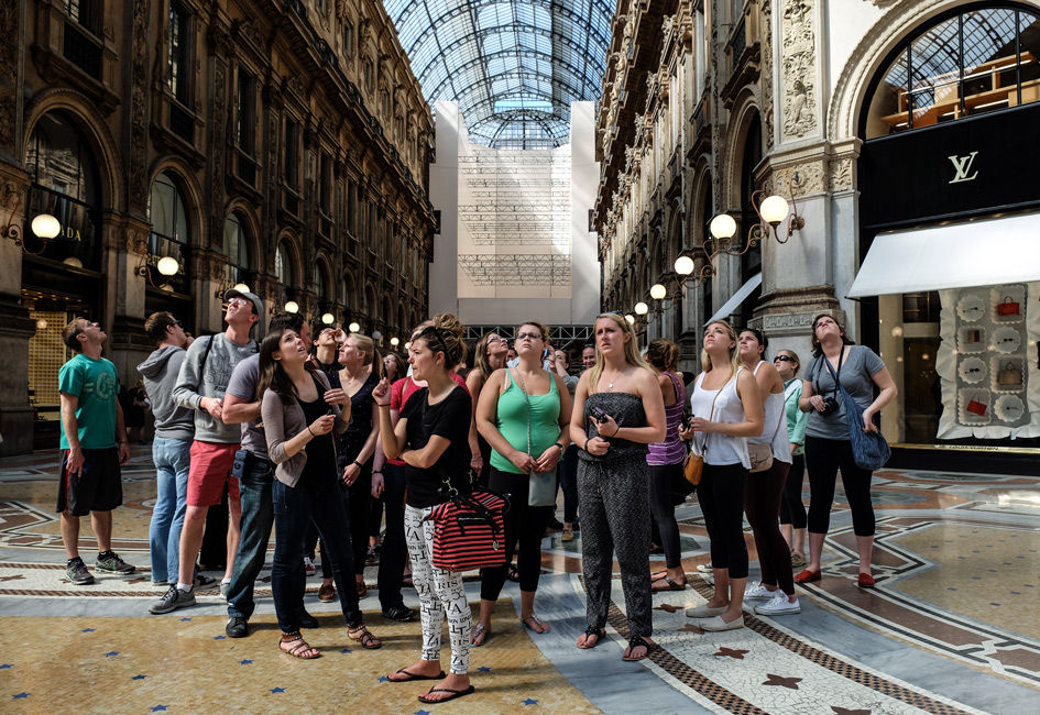Tutti col naso all'insù tranne una,forse la guida,attratta da altro.Bella inquadratura ed ottimi colori. Ciao,Sergio.  |