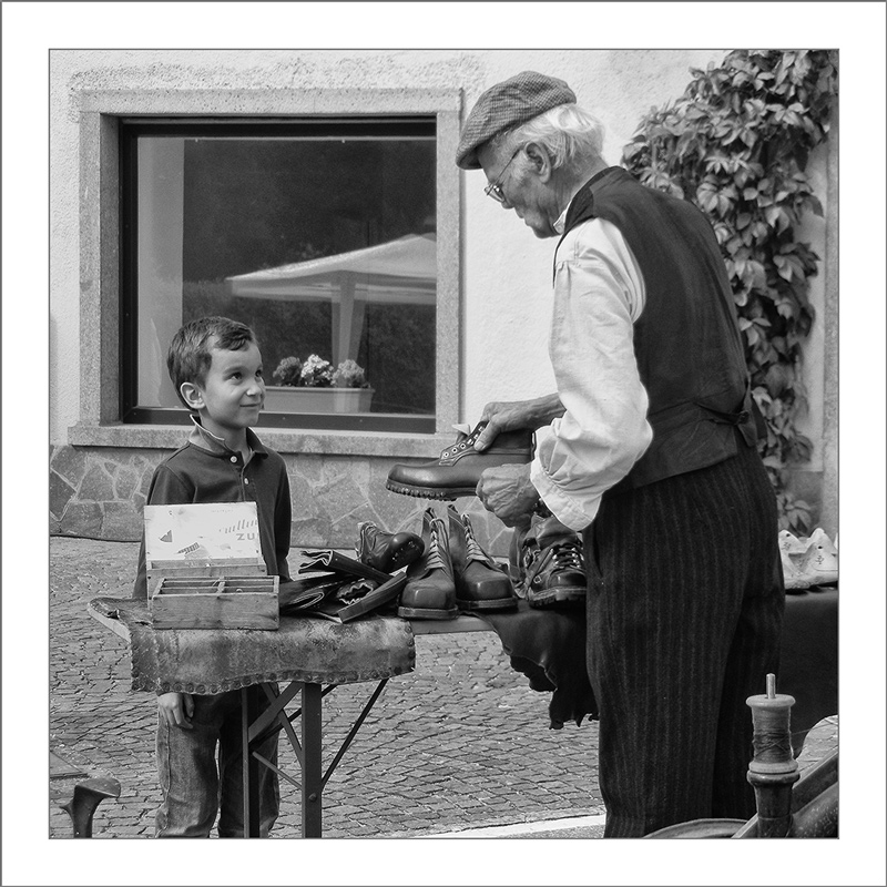 Bellissima l'espressione del bambino di fronte al vecchio artigiano,ottimo anche il taglio come il bn.Complimenti!Ciao,Sergio.  |